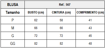 - Vestindo 36/38 (P) | 40 (M) | 42 (G) | 44 (GG)