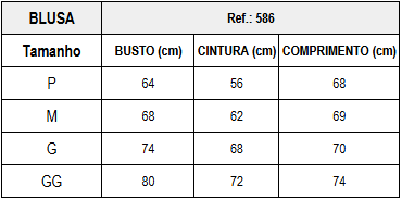 - Vestindo 36/38 (P) | 40 (M) | 42 (G) | 44 (GG)