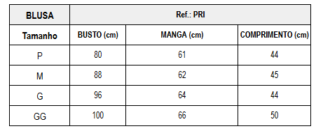 - Vestindo 36/38 (P) | 40 (M) | 42 (G) | 44 (GG)
