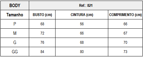 - Vestindo: 36 (P) | 38 (M) | 40/42 (G) | 44/46 (GG)
