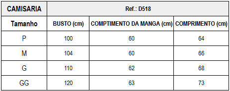 - Vestindo 36/38 (P) | 40 (M) | 42 (G) | 44 (GG)