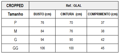 - Vestindo 36/38 (P) | 40 (M) | 42 (G) | 44 (GG)