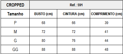 - Vestindo 36/38 (P) | 40 (M) | 42 (G) | 44 (GG)