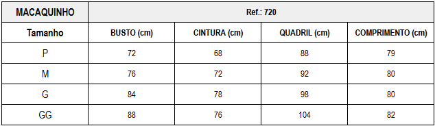 - Vestindo: 36/38 (P) | 40 (M) | 42 (G) | 44 (GG)