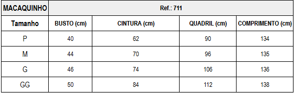 - Vestindo: 36/38 (P) | 40 (M) | 42 (G) | 44 (GG)