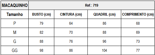 - Vestindo: 36/38 (P) | 40 (M) | 42 (G) | 44 (GG)