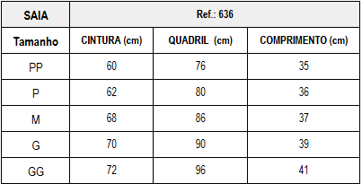 - Vestindo: 34 (PP) | 36/38 (P) | 40 (M) | 42 (G) | 44 (GG)
