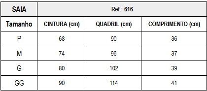 - Vestindo: 34/36 (P) | 38/40 (M) | 42 (G) | 44 (GG)