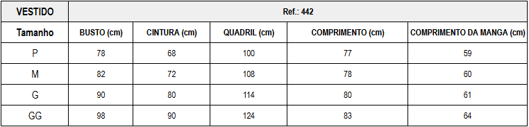 - Vestindo: 36/38 (P) | 40 (M) | 42 (G) | 44 (GG)