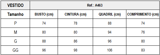 - Vestindo: 36/38 (P) | 40 (M) | 42 (G) | 44 (GG)
